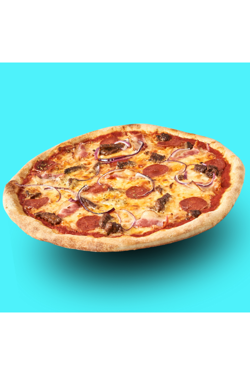 NOK 134.00 Mozzarella, biff, pepperoni, bacon og løk